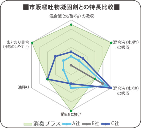 酸性水分を高速・高吸収しながら、吐瀉物のにおいも劇的消臭!
