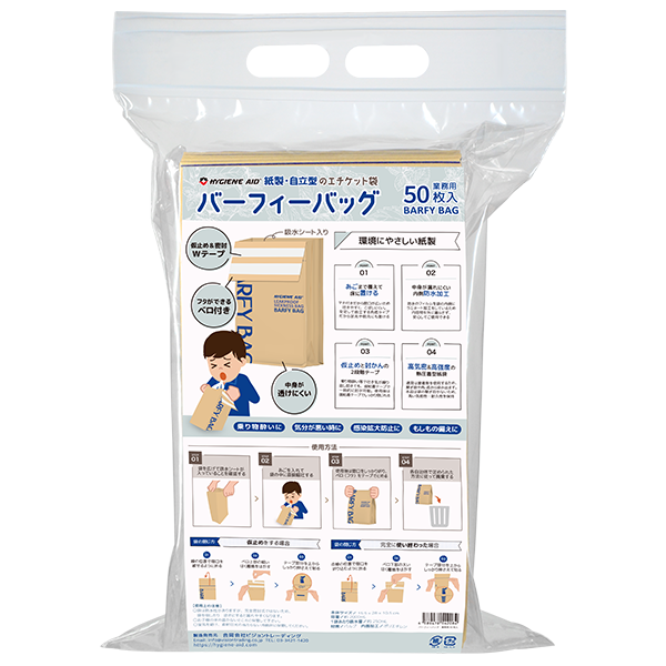 独自設計を施した「吸水シート入りの紙製エチケット袋」