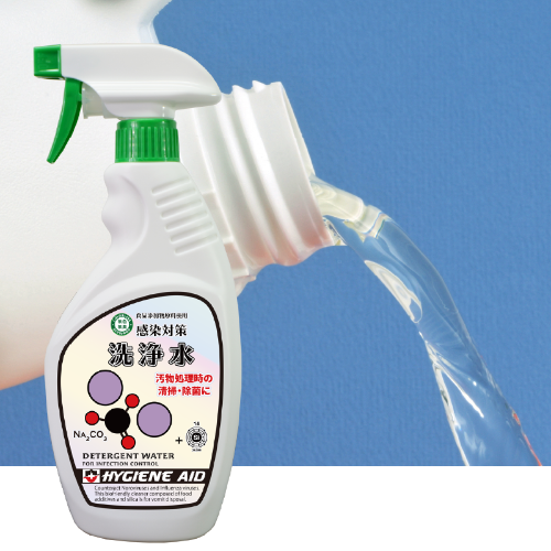 そして、処理後の清掃や周辺環境除菌には、『洗浄水』1本で除菌・清浄化が可能。