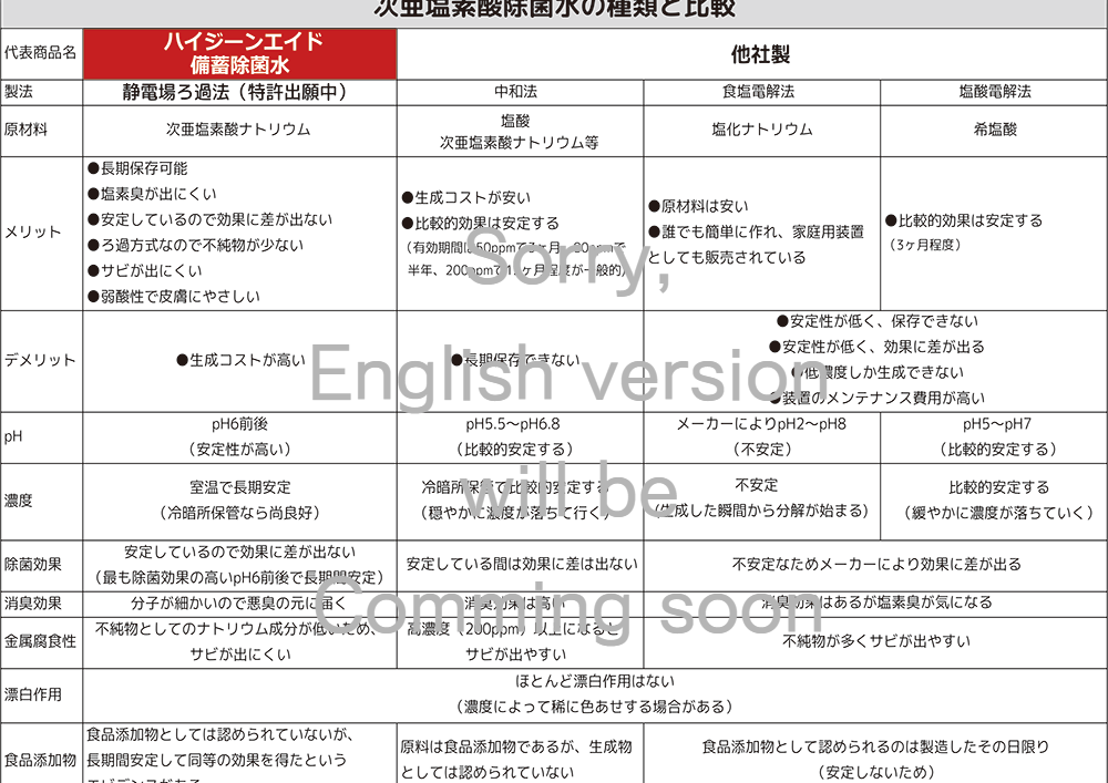 Moreover, ingredients include only sodium hypochlorite, which is one the food additives authorized by the MHLW, and with impure substances being removed.